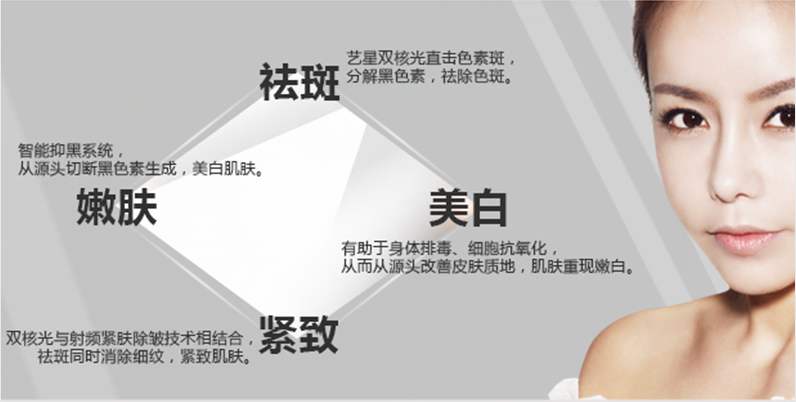 3.恢复时间短,疗程次少,尤其是消退黑色素和嫩肤的效果显著。
